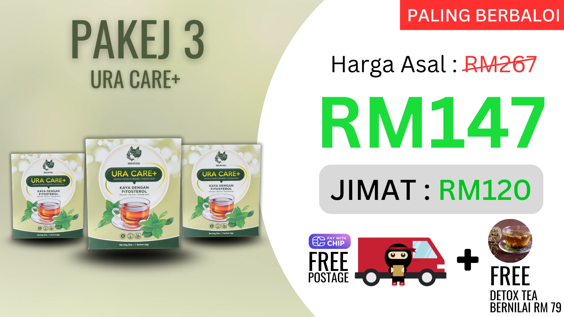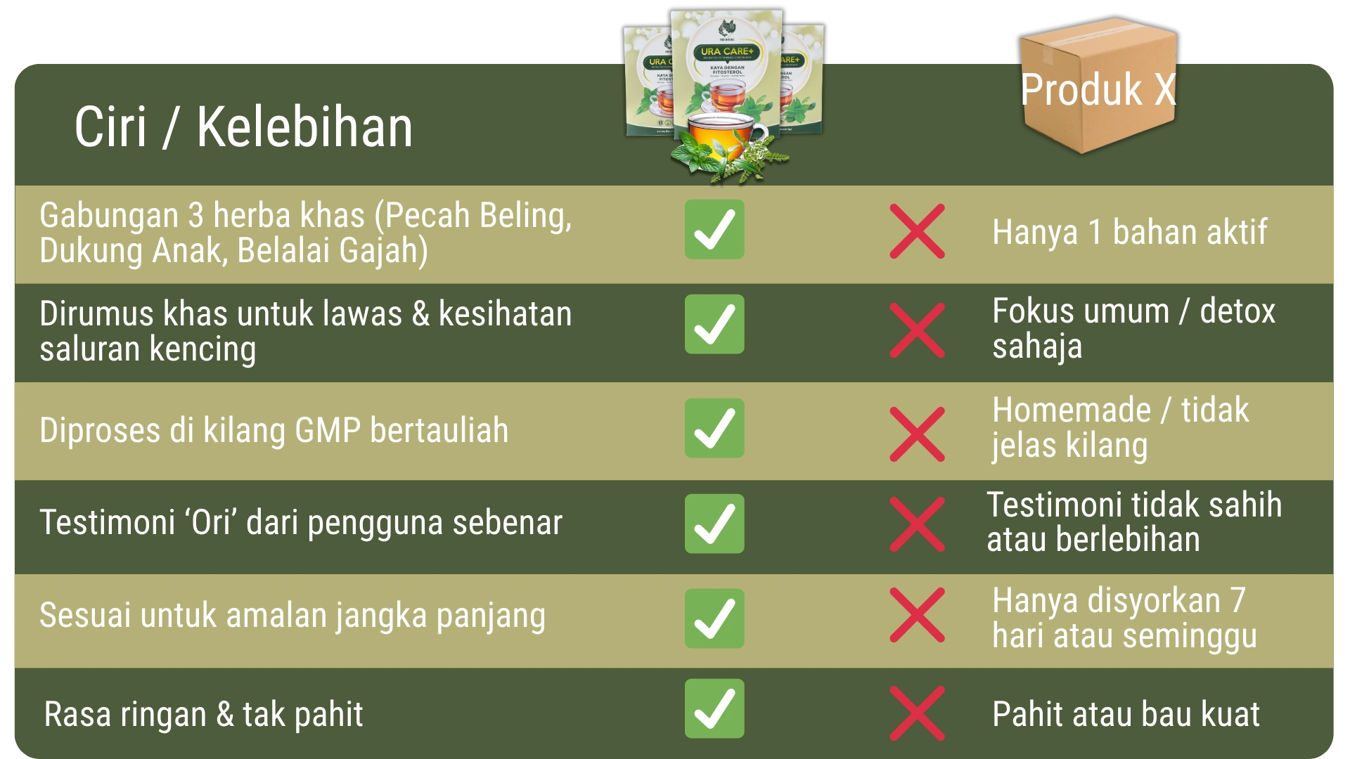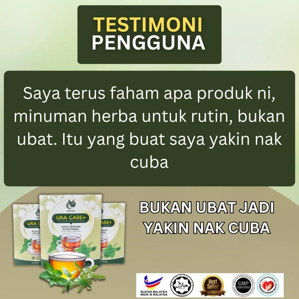 Ura Care+ ialah teh herba semula jadi, bukan ubat atau suplemen kimia.