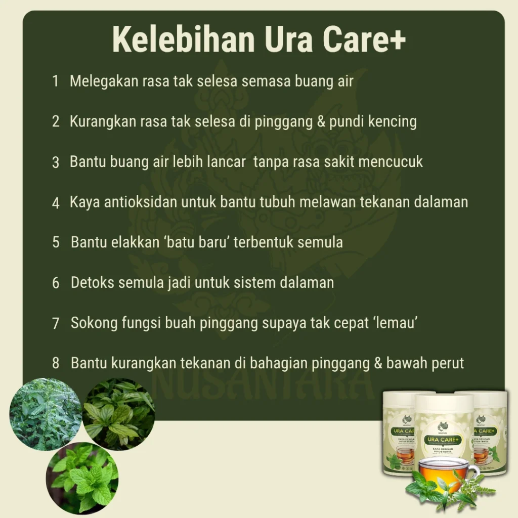 ✅ Ura Care+ ialah teh herba tradisional yang dirumus daripada tumbuhan seperti Pecah Beling, Dukung Anak & Belalai Gajah.