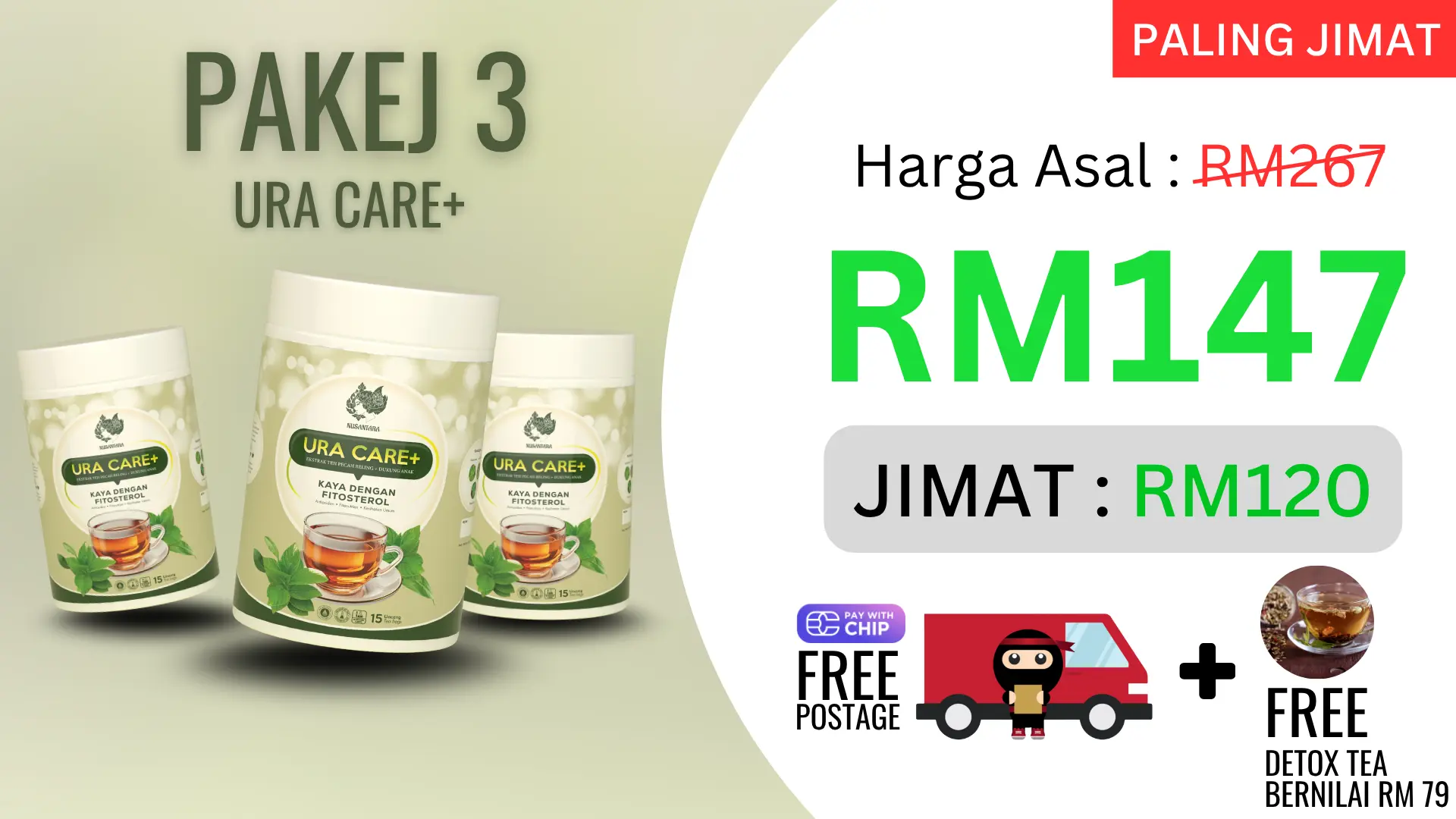 Ura Care+ ialah teh herba semula jadi, bukan ubat atau suplemen kimia.
